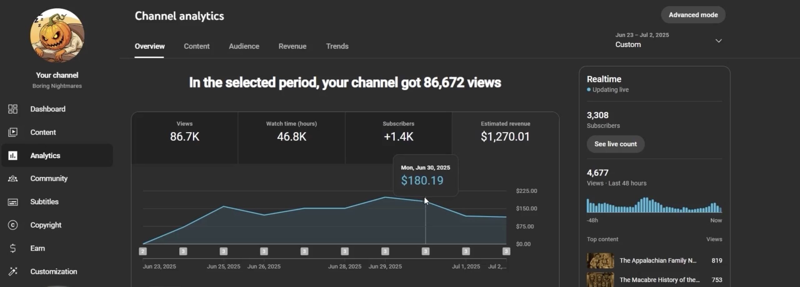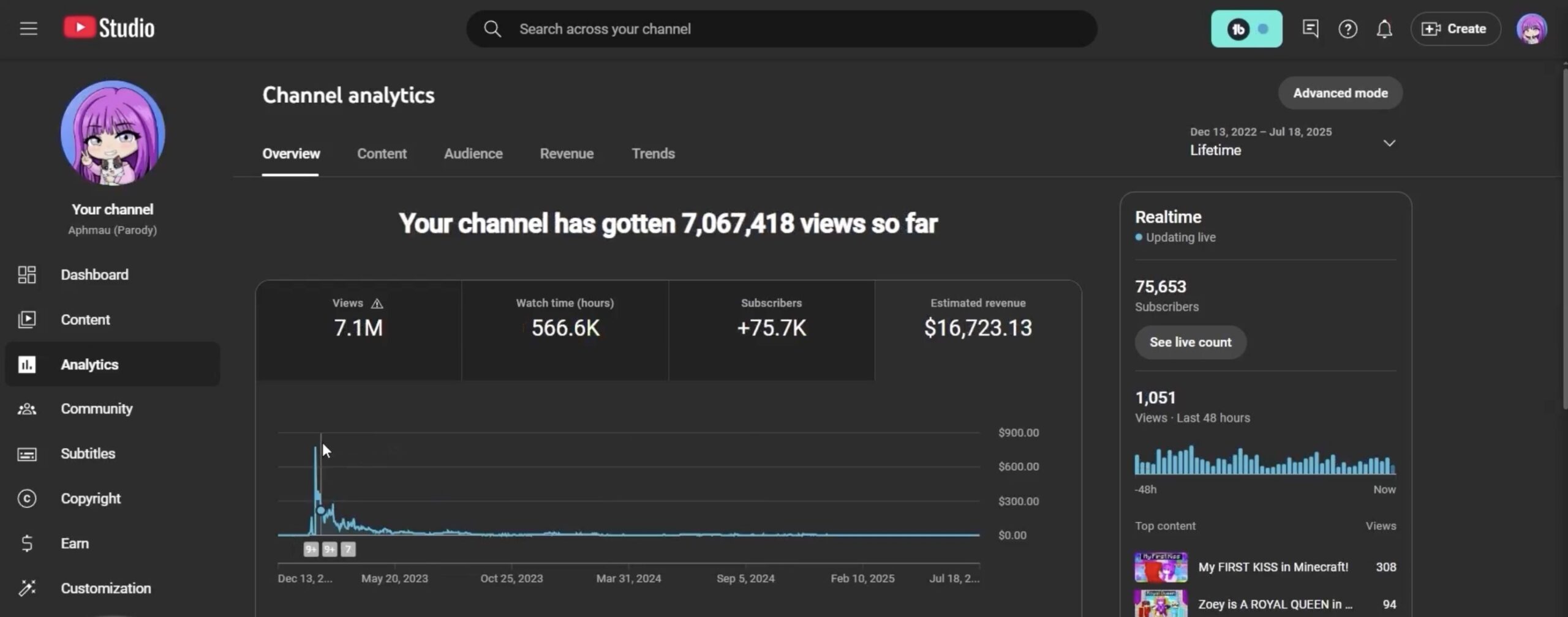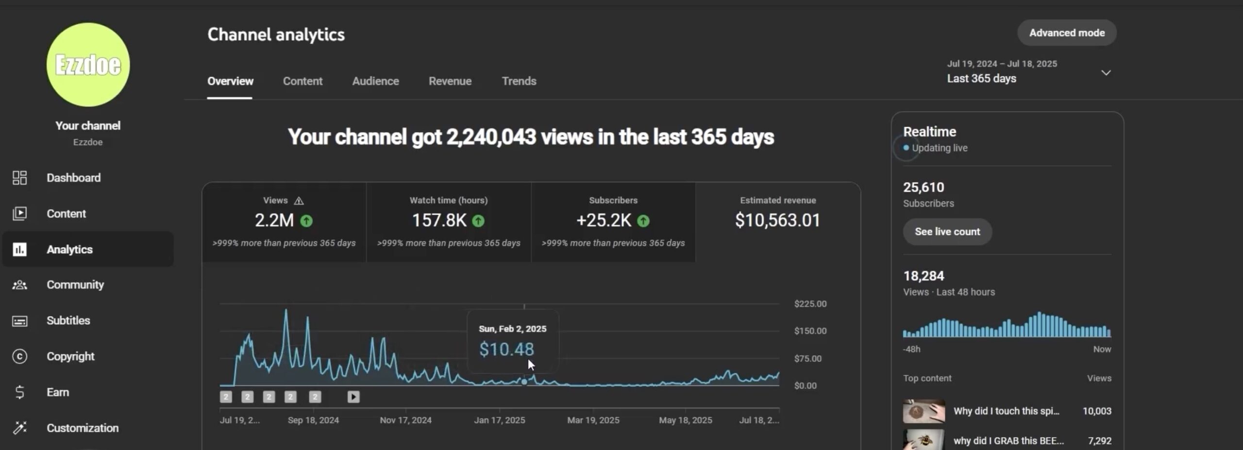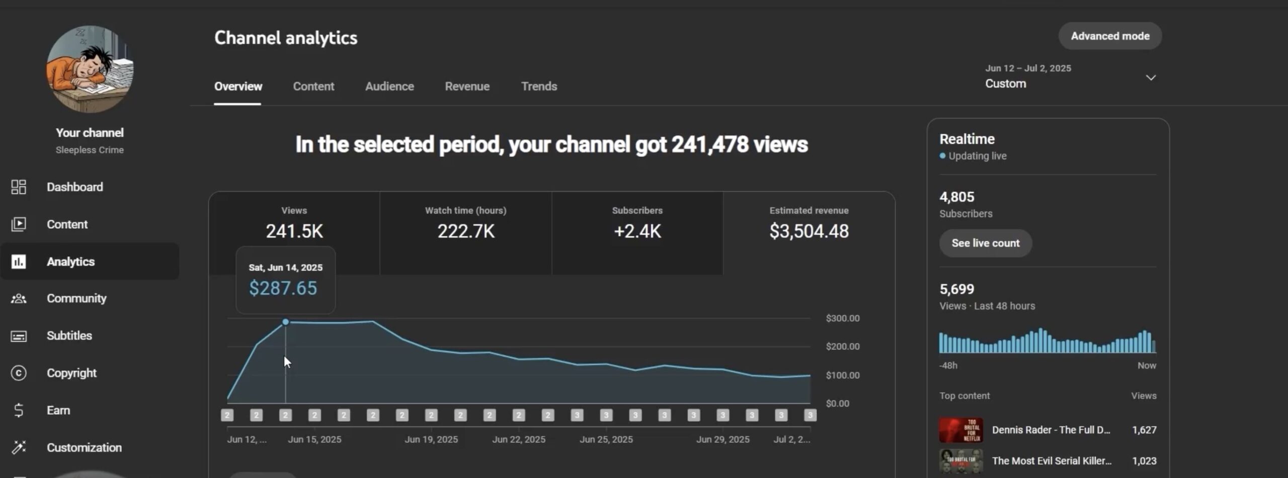 For example, the top result is a channel called Artium. This channel started 5 months ago and is getting crazy views — 3.3 million views per video. Doing the math, they’re making between $15,000 and $20,000 per video.